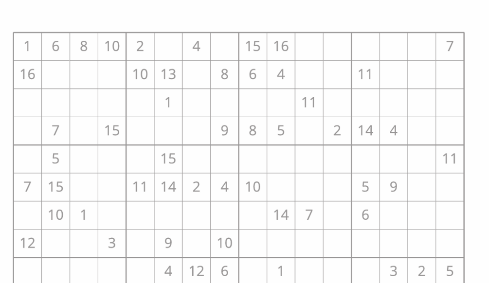 16x16 Easy Sudoku Puzzle